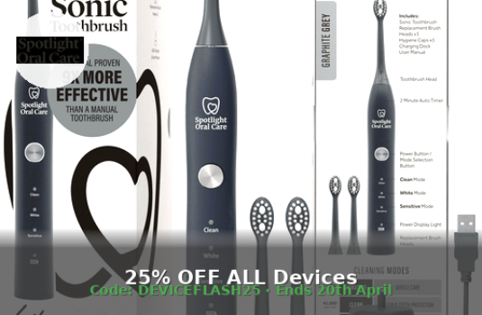 Home » Technology » Beauty Devices » 25% OFF ALL Devices — Spotlight Oral Care Beauty DevicesSpotlight Oral Care 25% OFF ALL Devices — Spotlight Oral Care Claim Yours SaveSavedRemoved 0 Dr Mobeus 17 April 2026 1 View 0 25% off ALL devices at Spotlight Oral Care! Use code DEVICEFLASH25 at checkout. Electric toothbrushes, water flossers and more. Offer ends 20th April. Excludes bundles. Get This Offer → 0 25% OFF ALL Devices — Spotlight Oral Care Claim Yours