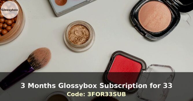 Get 3 months of Glossybox beauty subscription for just 33! Use code 3FOR33SUB at checkout. Each month receive a curated box of 5-6 beauty products worth over 40.